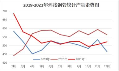 據(jù)國家統(tǒng)計局數(shù)據(jù),2021年12月,我國焊接厚壁無縫鋼管產量521.6萬噸,同比下降7.9%,1-12月焊接厚壁無縫鋼管產量5883.2萬噸,同比下降3.7%。