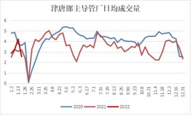 從焊鍍管品種來看,1月在統(tǒng)計11家管廠日均出貨量3.33萬噸,高于上年冬儲同期11.11%,低于2020年10.96%。1月主導管廠通過現(xiàn)價優(yōu)惠、預付款及協(xié)議超量優(yōu)惠、遠期保價政策等提高中大協(xié)議戶冬儲操作的積極性,隨著盤面情緒由謹慎轉向偏積極,各地貿易商今年儲貨量在正常庫存的10%-20%之間。中央經濟工作會議將管道建設工作提升到新高度,針對“城市血管”作出專門批示,未來利好老舊小區(qū)改造、水利、能源輸送用管。