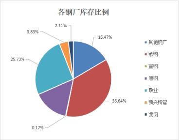 從各無(wú)縫厚壁無(wú)縫鋼管廠家比例來(lái)看,承鋼重回大哥位置,敬業(yè)次之仍有一定距離,唐鋼暫居第三,其他無(wú)縫厚壁無(wú)縫鋼管廠家緊隨其后,2672凌鋼分列五六幾乎并駕齊驅(qū),宣鋼存量已經(jīng)很小。