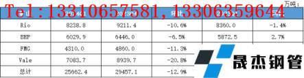 PBL&SP10L第一季度產(chǎn)量2338.6萬噸,環(huán)比下降11.1%,同比上升0.8%;PBF&SP10F第一季度產(chǎn)量3442.2萬噸,環(huán)比下降12.3%,同比下降5.8%;Robe L第一季度產(chǎn)量289.4萬噸,環(huán)比下降3.7%,同比上升35.0%;Robe F第一季度產(chǎn)量511.5萬噸,環(huán)比下降1.0%,同比上升36.5%;HIY第一季度產(chǎn)量1212.2萬噸,環(huán)比下降12.0%,同比下降11.3%;IOC Concentrate第一季度產(chǎn)量197.8萬噸,環(huán)比下降2.9%,同比下降6.4%;IOC Pellets第一季度產(chǎn)量254.2萬噸,環(huán)比上升9.1%,同比上升16.1%。