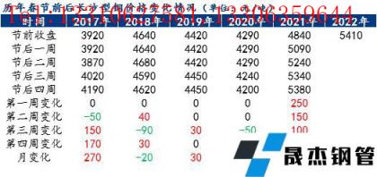 首先從近幾年春節(jié)前后長沙型鋼價格變化情況來看,除了2021年,其余幾年節(jié)后第一周基本以穩(wěn)為主,主要是因為需求未開始啟動,市場平盤運行。元宵之后,需求逐漸得到釋放,除了2020年因公共衛(wèi)生事件影響,釋放進度有所滯后,節(jié)后開盤價格出現(xiàn)回落,其余幾年以震蕩趨強運行為主,不管是無縫鋼管廠還是貿(mào)易商,為獲利消化冬儲庫存,均對節(jié)后開門紅存在一定期待。而2022年節(jié)前收盤價格偏高,貿(mào)易商情緒較為謹慎,正常備庫,主動冬儲意愿不強,節(jié)后市場庫存壓力相對可控,對開盤價格存在一定支撐。