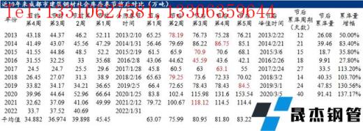 回顧近10年來成都建筑鋼材社會庫存春節(jié)前后對比,成都建筑鋼材庫存平均累庫量在41.17萬噸左右,累庫幅度在90.88%,2020年累庫較為明顯。2022年春節(jié)放假較早,川內(nèi)短流程無縫鋼管廠停產(chǎn)放假時間提前,加之北方資源到貨同比減少,節(jié)前成都建筑鋼材社會庫存累積緩慢。近10年來春節(jié)后成都建筑鋼材庫存峰值均出現(xiàn)第3-4周,累庫周期約21天。節(jié)后庫存峰值最高為2020年近158.05萬噸,其次是2021年的118.12萬噸。從川內(nèi)無縫鋼管廠停產(chǎn)檢修計劃,以及省外無縫鋼管廠資源到貨情況來看,預計節(jié)后四川建材庫存累積周期或較去年縮短,且?guī)齑娣逯狄嗝黠@下降。