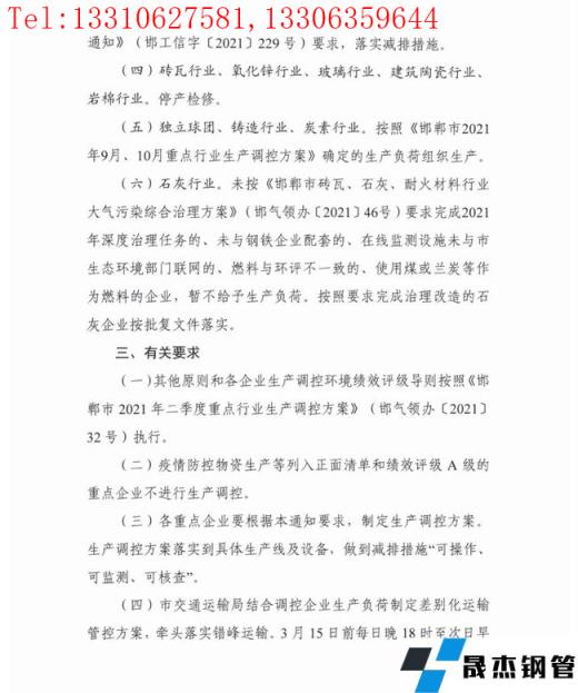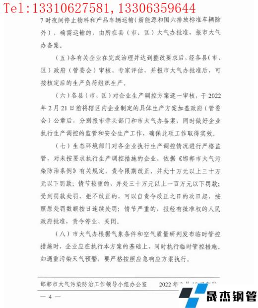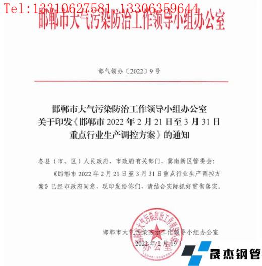 日前,邯鄲市大氣污染防治工作領(lǐng)導(dǎo)小組辦公室印發(fā)了《邯鄲市2022年2月21日至3月31日重點行業(yè)生產(chǎn)調(diào)控方案》。方案中對2022年2月21日至3月31日時段內(nèi)的鋼鐵、焦化、水泥、獨立球團、鑄造、炭素等重點行業(yè)開展停限產(chǎn)措施。