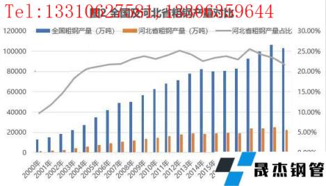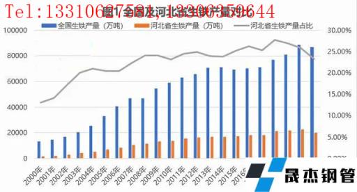 河北省在中國(guó)鋼鐵行業(yè)中占據(jù)著舉足輕重的位置,從河北省鋼鐵產(chǎn)量數(shù)據(jù)來(lái)看,2021年,河北省生鐵產(chǎn)量為20202.98萬(wàn)噸,同比下降11.8%,占全國(guó)生鐵產(chǎn)量的23.3%(詳見(jiàn)圖1);粗鋼產(chǎn)量為22496.45萬(wàn)噸,同比下降9.9%,占全國(guó)粗鋼產(chǎn)量的21.8%(詳見(jiàn)圖2);厚壁管產(chǎn)量為29559.38萬(wàn)噸,同比下降1.8%,占全國(guó)厚壁管產(chǎn)量的22.1%(詳見(jiàn)圖3)。