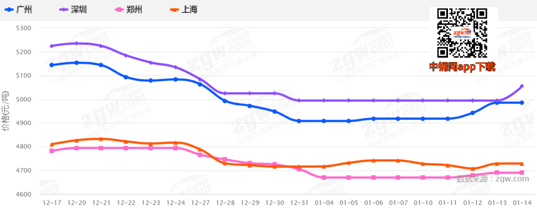截至1月14日,全國237家流通商周均成交量11.92萬噸,周均成交量環(huán)比減少2.84萬噸,減幅為19.24%。據(jù)不完全統(tǒng)計,40家電弧爐獨立建筑鋼材生產(chǎn)的鋼廠中,已有25家停產(chǎn),占62.5%。其中,1月1日前停產(chǎn)的鋼廠占24%,而1月1日至1月10日停產(chǎn)的鋼廠占60%,處于鋼廠集中停產(chǎn)階段。根據(jù)市場收集的信息來看,獨立電弧爐建筑鋼材鋼廠平均成本4817元/噸,周環(huán)比上升93元/噸。當前電弧爐鋼廠虧損嚴重,尤其是飽和生產(chǎn)的情況下,噸鋼虧損超百元。