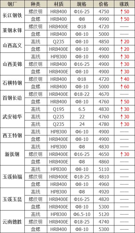 上調(diào)10家,占比43.5%,調(diào)價幅度20-60元/噸,