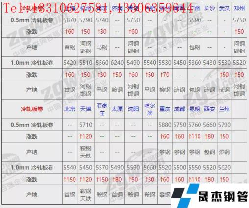 全國23個主要市場1.0mm 冷軋板卷平均價格5547元/噸,較上個交易日上調(diào)62元/噸。