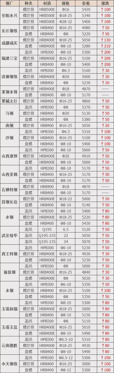 上調(diào)21家,占比91.3%,調(diào)價幅度30-210元/噸;