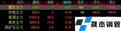 今日螺紋主力期貨跌1,收報4905,跌幅0.02%;熱卷主力漲5,收報5033,漲幅0.1%;焦煤主力漲35.5,收報2352,漲幅1.53%;焦炭主力漲71.5,收報3095,漲幅2.36%;鐵礦石主力漲2.5,收報805,漲幅0.31%。