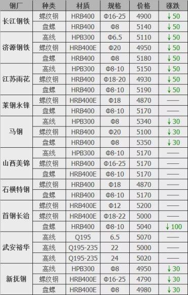 下調(diào)5家,占比55.7%,調(diào)價(jià)幅度20-100元/噸;
