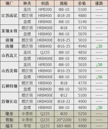 下調(diào)3家,占比23%,調(diào)價(jià)幅度30-50元/噸;