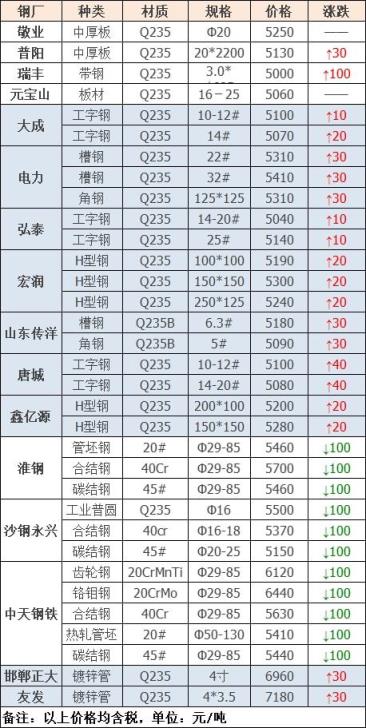 3月1日廣東河源德潤(rùn)鋼鐵廢鋼價(jià)格漲50元:鋼筋切粒3530;邊角料,新鋼板料3500;純鋼筋頭,直鋼筋3480;模具鋼、料頭圓鋼、軌道鋼、火車輪3480;硅鋼片停收;冷軋、熱軋、碎料沖子3430;優(yōu)重3480;鍛打料、馬蹄鐵3480;重廢3450;機(jī)械生鐵、高碳鋼、鑄鋼件、生熟混裝3450;厚剪3400,不含稅。