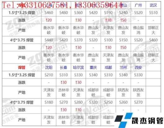 全國(guó)15個(gè)主要市場(chǎng)1.5寸*3.25 焊管平均價(jià)格5357元/噸,較上個(gè)交易日上調(diào)13元/噸。