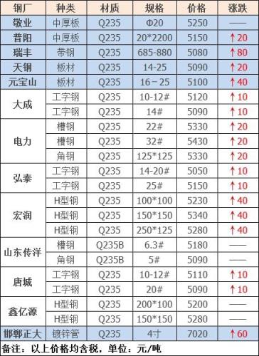 今日板、型、管材共13家無縫鋼管廠家調(diào)價發(fā)布,其中: