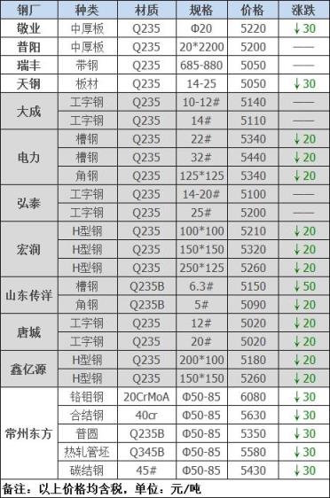 跌幅最大為山東傳洋槽鋼;