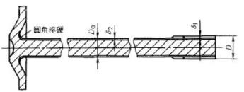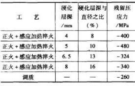 ▲圖3半軸工藝淬火硬化層與強度分布a)太淺b)合適c)太深桿部:硬化層深度應(yīng)達到桿部直徑的15%(δ2=15%D0)。法蘭根部:要求法蘭盤與桿部連接的過渡圓角淬硬。在實際生產(chǎn)中,圓角處硬化區(qū)域的最小直徑應(yīng)比半軸桿部直徑大25%。這些要求是為了保證半軸的靜強度和疲勞強度?;ㄦI與桿部的淬硬層深度對靜強度影響較大,法蘭圓角淬硬對疲勞極限影響較大。每種表面淬火半軸都有最佳的硬化層深,應(yīng)考慮到硬化層深對表層殘留壓應(yīng)力的影響。表6 列出了直徑為50mm的帶法蘭半軸感應(yīng)加熱淬火后花鍵尾根部位的殘留壓應(yīng)力。通常,感應(yīng)加熱淬火硬化層深度可以根據(jù)半軸桿部直徑的大小和產(chǎn)品設(shè)計結(jié)構(gòu)形狀來確定。對輕型載重車和小轎車的法蘭盤式半軸(桿部直徑在50mm以下)淬硬層深度可按下列要求確定(參閱圖4)。