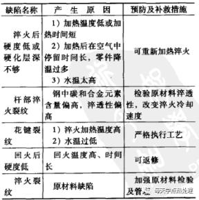 ▼表15半軸表面感應(yīng)淬火常見缺陷的預(yù)防及補救措施
