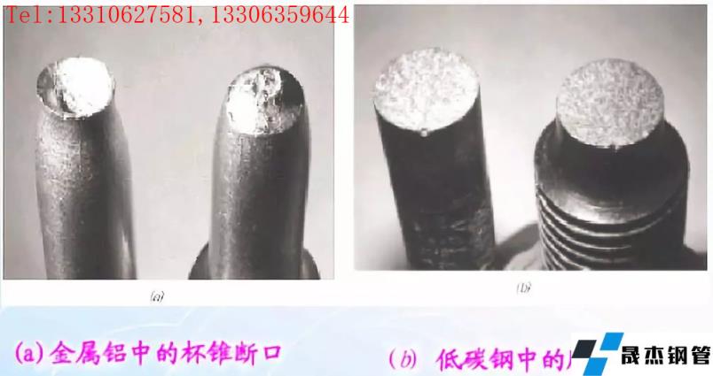 韌性斷裂是一個緩慢的斷裂過程,塑性變形與裂紋成長同時進行。裂紋萌生及亞穩(wěn)擴展阻力大、速度慢,材料在斷裂過程中需要不斷消耗相當多的能量。隨著塑性變形的不斷增加,承載截面積減小,至材料承受的載荷超過了強度極限σb時,裂紋擴展達到臨界長度,發(fā)生韌性斷裂。