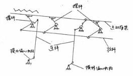 當(dāng)升降驅(qū)動(dòng)電機(jī)驅(qū)動(dòng)偏心軸轉(zhuǎn)動(dòng)時(shí),通過(guò)連桿和拉桿使步進(jìn)框架上、下運(yùn)動(dòng),從而帶動(dòng)步進(jìn)梁運(yùn)動(dòng)。因?yàn)槠妮S帶動(dòng)的擺桿和活動(dòng)框架是滾動(dòng)接觸,這樣就可以保證活動(dòng)梁在提升驅(qū)動(dòng)過(guò)程中只有升降運(yùn)動(dòng),而無(wú)平移運(yùn)動(dòng)。同樣當(dāng)橫移驅(qū)動(dòng)電機(jī)驅(qū)動(dòng)偏心軸轉(zhuǎn)動(dòng)時(shí),通過(guò)連桿使擺動(dòng)機(jī)構(gòu)使運(yùn)動(dòng)框架水平移動(dòng)。