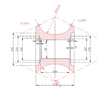 需要說明的是,AR與AO的精軋機是一樣的。在實際設(shè)計時,AR所設(shè)計的精軋機孔型與AO的精軋機孔型是不一樣的,但考慮到經(jīng)濟,所以決定共用一套精軋孔型。事實上,這是完全可行的。管子在精軋段寬展很小,橢圓系數(shù)相差微乎其微,管的外徑幾乎不會受到影響,即便是軋制較厚的厚壁管時,由于孔型橢圓度的微小改變造成壓小量和寬展量的微小改變,也不會影響到壁厚。因為在精軋部分,我們基本可以忽略金屬沿管圓周方向上各點的張力相對原孔型改變而改變造成的對橫向壁厚不均的影響,而外徑就更不用說了。