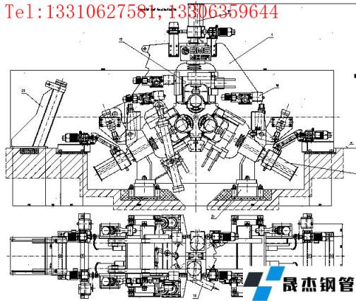 可調(diào)式三輥定心裝置,分布在芯棒移送系統(tǒng)和軋機(jī)之間,它的作用一是抱毛管,二是抱芯棒,三是打開接受毛管;