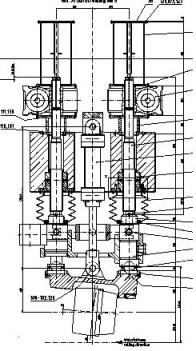 軋輥調(diào)整裝置保證按照軋制要求調(diào)整孔喉和輾軋角,由兩個電動壓下絲杠完成的,它們可單獨(dú)操作,也可以同時操作,當(dāng)兩個壓下絲杠進(jìn)行反向運(yùn)動時,可調(diào)整軋輥的輾軋角,確定輾軋角后,兩個絲杠同時壓下或抬起可調(diào)整軋輥的孔喉尺寸。在兩個壓下絲杠之間,機(jī)架內(nèi)有一個液壓缸與軋輥?zhàn)B接,它的作用是保持輥箱的穩(wěn)定,避免壓下絲杠端部與轉(zhuǎn)轂之間產(chǎn)生間隙,我們稱之為平衡缸。