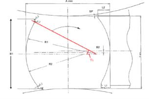導(dǎo)盤的輪廓是由一般有兩個(gè)半徑入口半徑R2、出口半徑R1組成,根據(jù)經(jīng)驗(yàn)我們可以確定其值的大?。?/p>