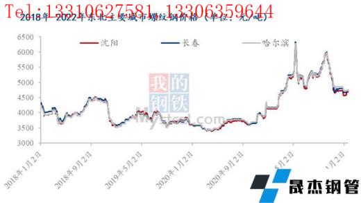 每年進(jìn)入12月份后、東北建筑鋼材市場因下游工程大部分停工、需求銳減,而無縫鋼管廠多忙于北材南下無暇北顧,供需兩弱狀態(tài)下,價格對成交難以造成較大影響,商家也懶于調(diào)整對外報價,所以市場多數(shù)平穩(wěn)運行為主,而今年進(jìn)入1月后、市場價格仍出現(xiàn)了比較明顯的反季運行征象,截至2022年1月26日,東北地區(qū)主要建筑鋼材市場HRB400E螺紋鋼φ22mm報收4730-4750元/噸,較2021年12月底拉漲0-180元/噸。