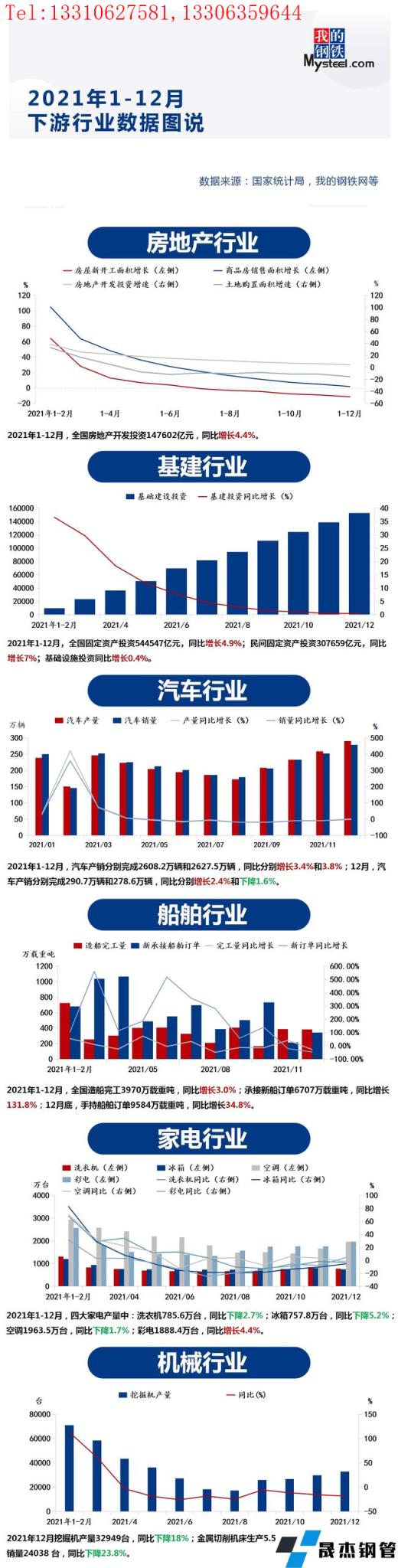 匯總了2021年1-12月部分下游用鋼行業(yè)的運行情況。