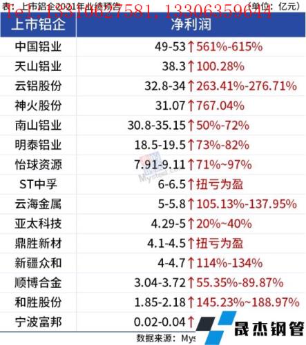免責(zé)聲明:本網(wǎng)站(山東聊城晟杰無(wú)縫鋼管廠www.abagaf.com)刊載的“15家上市鋁企2021年業(yè)績(jī)飄紅,神火股份大增超7倍”等均源于網(wǎng)絡(luò),版權(quán)歸原作者所有,且僅代表原作者觀點(diǎn),本文所載信息僅供參考。轉(zhuǎn)載僅為學(xué)習(xí)與交流之目的,如無(wú)意中侵犯您的合法權(quán)益,請(qǐng)及時(shí)聯(lián)系刪除。本網(wǎng)站刊登此篇文章并不意味著本站贊同其觀點(diǎn)或證實(shí)其內(nèi)容的真實(shí)性,我們不對(duì)其科學(xué)性、嚴(yán)肅性等作任何形式的保證。如果侵犯了您的版權(quán),請(qǐng)盡快聯(lián)系我們予以撤銷,謝謝合作!