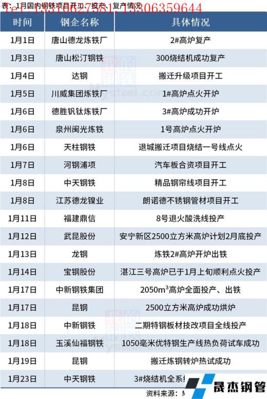 免責(zé)聲明:本網(wǎng)站(山東聊城晟杰無縫鋼管廠www.abagaf.com)刊載的“1月國內(nèi)20個鋼鐵項目開工、投產(chǎn)和復(fù)產(chǎn)”等均源于網(wǎng)絡(luò),版權(quán)歸原作者所有,且僅代表原作者觀點,本文所載信息僅供參考。轉(zhuǎn)載僅為學(xué)習(xí)與交流之目的,如無意中侵犯您的合法權(quán)益,請及時聯(lián)系刪除。本網(wǎng)站刊登此篇文章并不意味著本站贊同其觀點或證實其內(nèi)容的真實性,我們不對其科學(xué)性、嚴(yán)肅性等作任何形式的保證。如果侵犯了您的版權(quán),請盡快聯(lián)系我們予以撤銷,謝謝合作!