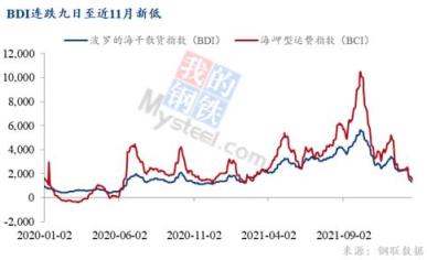波羅的海干散貨運價指數(shù)(BDI)是反映全球礦石、煤炭等大宗散貨運價的權(quán)威指標。近三個月來,因為所有型船需求疲軟,截止2022年1月24日,波羅的海干散貨運價指數(shù)連續(xù)第十二個交易日下滑至1391點,為去年2月以來最低水準;BCI跌至891點為2020年6月以來新低。