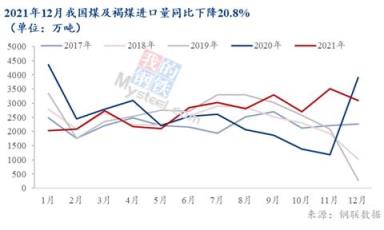 煤炭是與鐵礦石海運貿(mào)易體量相當?shù)牧硪淮笞谏唐罚?0月開始國內(nèi)原煤產(chǎn)量在增產(chǎn)保供下不斷提高,也變相著削弱中國對海外煤的依賴:我國10-12月份原煤產(chǎn)量分別為3.6、3.7、3.8億噸屢創(chuàng)國內(nèi)新高,對海外煤炭需求逐漸減弱,12月我國進口煤炭同比下滑20%。步入2022年1月,印尼煤炭出口禁令對海運市場算是雪上加霜。