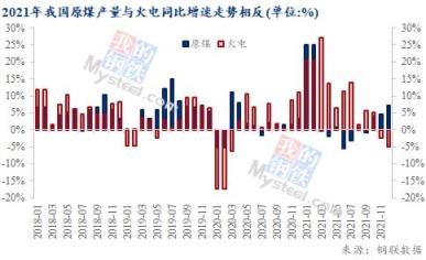 煤炭在供應(yīng)大幅增產(chǎn)下,國內(nèi)需求同比下降。與2020年12月同期相比,去年12月下游需求明顯高位回落,電力生產(chǎn)同比下降。12月,發(fā)電7234億千瓦時,同比下降2.1%,11月為同比增長0.2%,降幅明顯擴大。其中火力發(fā)電12月同比下降近5%。