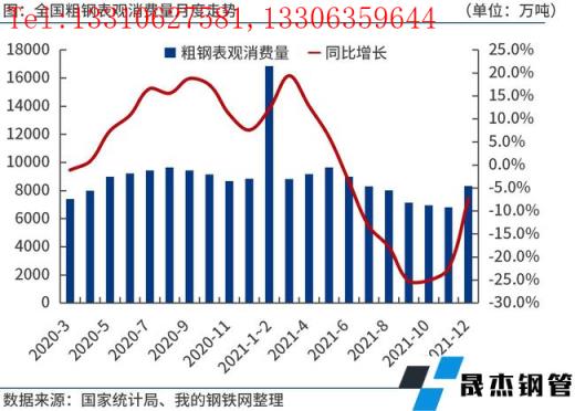 2021年12月份,全國粗鋼日均產(chǎn)量278.04萬噸,環(huán)比大增20.3%,預(yù)計1月份產(chǎn)量變化不大。臨近春節(jié)假期,鋼市進入傳統(tǒng)需求淡季。不過,由于多部門集中出臺穩(wěn)增長政策,市場情緒得到提振,加之無縫鋼管廠家集中補庫,原燃料價格強勢上漲,推動鋼價震蕩偏強運行。今年我國基建投資有望發(fā)力,但房地產(chǎn)投資不容樂觀,鋼鐵消費或弱于去年。如果節(jié)后無縫鋼管廠家適度控制產(chǎn)能釋放,合理安排復(fù)工復(fù)產(chǎn)進度,實現(xiàn)供需動態(tài)平衡,鋼價或延續(xù)震蕩偏強運行。