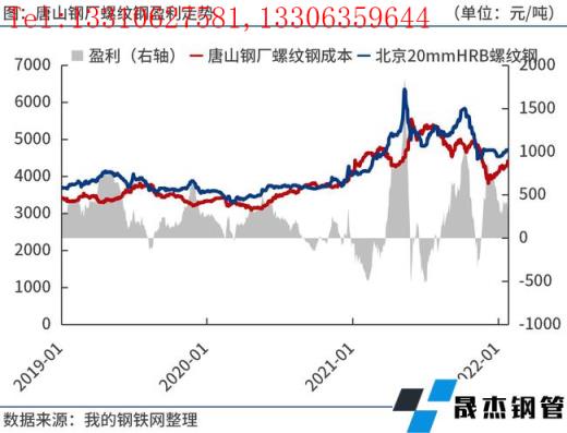 成本方面,據(jù)筆者測算,1月底唐山長流程無縫鋼管廠家螺紋鋼噸鋼毛利(成本不包含三項費用、折舊等)300元/噸左右。由于1月份原燃料價格漲幅高于鋼價,導(dǎo)致無縫鋼管廠家效益有所下滑,部分電爐廠因虧損減產(chǎn)。