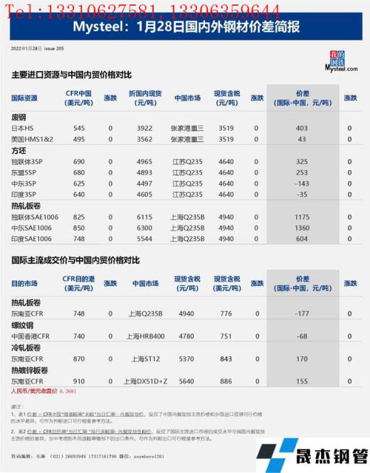 免責聲明:本網(wǎng)站(山東聊城晟杰無縫鋼管廠www.abagaf.com)刊載的“2022年01月28日日報:國內(nèi)外鋼材_無縫鋼管價差匯總(2022.1.28)”等均源于網(wǎng)絡,版權(quán)歸原作者所有,且僅代表原作者觀點,本文所載信息僅供參考。轉(zhuǎn)載僅為學習與交流之目的,如無意中侵犯您的合法權(quán)益,請及時聯(lián)系刪除。本網(wǎng)站刊登此篇文章并不意味著本站贊同其觀點或證實其內(nèi)容的真實性,我們不對其科學性、嚴肅性等作任何形式的保證。如果侵犯了您的版權(quán),請盡快聯(lián)系我們予以撤銷,謝謝合作!