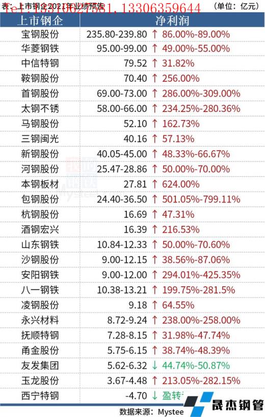 免責(zé)聲明:本網(wǎng)站(山東聊城晟杰無縫鋼管廠www.abagaf.com)刊載的“24家上市鋼企業(yè)績飄紅,9家實(shí)現(xiàn)凈利潤翻倍增長”等均源于網(wǎng)絡(luò),版權(quán)歸原作者所有,且僅代表原作者觀點(diǎn),本文所載信息僅供參考。轉(zhuǎn)載僅為學(xué)習(xí)與交流之目的,如無意中侵犯您的合法權(quán)益,請(qǐng)及時(shí)聯(lián)系刪除。本網(wǎng)站刊登此篇文章并不意味著本站贊同其觀點(diǎn)或證實(shí)其內(nèi)容的真實(shí)性,我們不對(duì)其科學(xué)性、嚴(yán)肅性等作任何形式的保證。如果侵犯了您的版權(quán),請(qǐng)盡快聯(lián)系我們予以撤銷,謝謝合作!