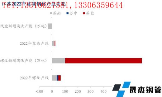 2022年江蘇產(chǎn)能整體呈現(xiàn)小幅增加的態(tài)勢(shì),具體來看,蘇南地區(qū)螺紋產(chǎn)能新增100萬噸,淘汰30萬噸,蘇中區(qū)域暫無新增產(chǎn)能,蘇北區(qū)域產(chǎn)能增幅明顯,其中螺紋新增產(chǎn)能600萬噸;從生產(chǎn)條線來看,螺紋產(chǎn)線主要集中在蘇南、蘇北區(qū)域,蘇中區(qū)域占比較少,而盤線方面,主要是蘇南區(qū)域。整體2022年螺紋產(chǎn)線52條,同比新增5條,產(chǎn)能6504萬噸,同比新增700萬噸;盤螺產(chǎn)線25條,同比新增1條,淘汰1條,產(chǎn)能3520萬噸,淘汰30萬噸。