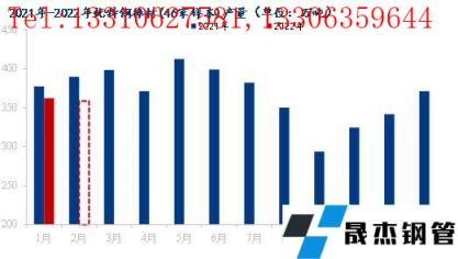 1月全國(guó)優(yōu)特鋼棒材(34家樣本)產(chǎn)量300萬噸,環(huán)比減少6.77萬噸,2月預(yù)計(jì)產(chǎn)量299萬噸;46家樣本1月產(chǎn)量362萬噸,環(huán)比減少8.87萬噸,2月預(yù)計(jì)產(chǎn)量358萬噸。1月優(yōu)特鋼棒材表需358萬噸環(huán)比下降38.58萬噸。