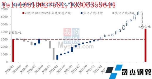 截至2021年1月21日,據(jù)調(diào)研統(tǒng)計,到2022年底總焦化產(chǎn)能預(yù)計將達(dá)到5.54億噸/年,將高于2021年底的5.4億噸/年,年增幅2.9%。