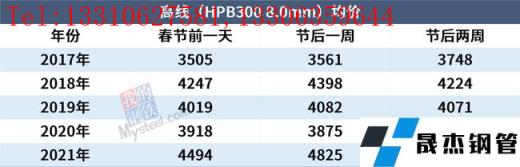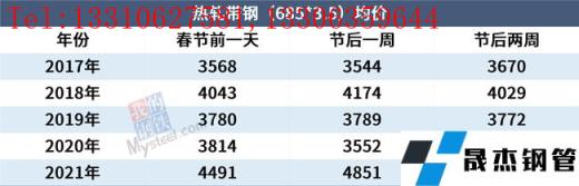 小編匯總近5年春節(jié)后兩周全國(guó)主要城市13大品種厚壁無縫鋼管均價(jià)走勢(shì),以供參考。