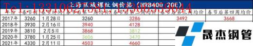 二:近五年上海建筑厚壁無縫鋼管春節(jié)均價(jià)走勢: