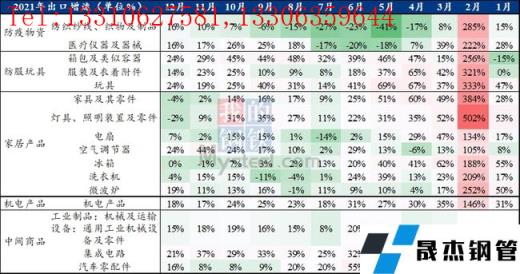 分階段來(lái)看,2021年3月-7月,全球疫情出現(xiàn)階段性緩解,防疫物資出口增速明顯下滑,在歐美國(guó)家持續(xù)量化寬松下,箱包、服裝、玩具、家居產(chǎn)品等消費(fèi)品出口維持較高增速。同時(shí),伴隨海外復(fù)工復(fù)產(chǎn),機(jī)電產(chǎn)品、零配件等中間品較快復(fù)蘇;2021年8月-12月,受疫情反復(fù)影響,防疫物資出口逐步恢復(fù)增長(zhǎng),家居相關(guān)消費(fèi)品出現(xiàn)明顯下滑,紡服玩具類消費(fèi)品、以及部分中間品(集成電路與工程機(jī)械)維持強(qiáng)勁出口。