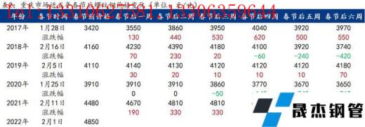 筆者回顧了近5年西南區(qū)域各主要建筑厚壁無縫鋼管市場價格,通過對節(jié)后六周價格變化的對比得出,除2020年春節(jié)后受公共衛(wèi)生事件影響,其余時間節(jié)后前兩周基本以“開門紅”的上漲行情為主。