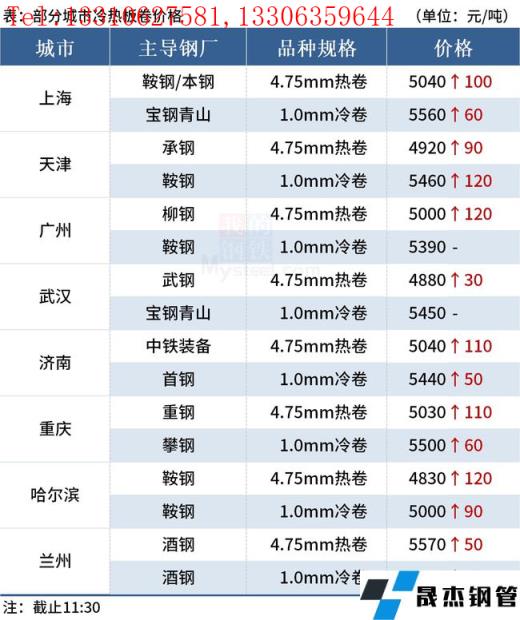 ◎樂(lè)從:7日早盤(pán)熱卷市場(chǎng)價(jià)格上漲120,4.75以上普柳燕5000-5010,2.75普5040-5190錳5190-5210。(單位:元/噸)