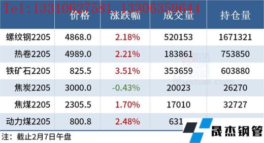 免責(zé)聲明:本網(wǎng)站(山東聊城晟杰無(wú)縫鋼管廠(chǎng)www.abagaf.com)刊載的“2022年02月07日午報(bào):鋼價(jià)全線(xiàn)上漲,鐵礦石期貨漲逾3%”等均源于網(wǎng)絡(luò),版權(quán)歸原作者所有,且僅代表原作者觀(guān)點(diǎn),本文所載信息僅供參考。轉(zhuǎn)載僅為學(xué)習(xí)與交流之目的,如無(wú)意中侵犯您的合法權(quán)益,請(qǐng)及時(shí)聯(lián)系刪除。本網(wǎng)站刊登此篇文章并不意味著本站贊同其觀(guān)點(diǎn)或證實(shí)其內(nèi)容的真實(shí)性,我們不對(duì)其科學(xué)性、嚴(yán)肅性等作任何形式的保證。如果侵犯了您的版權(quán),請(qǐng)盡快聯(lián)系我們予以撤銷(xiāo),謝謝合作!