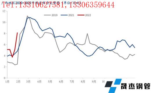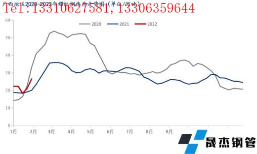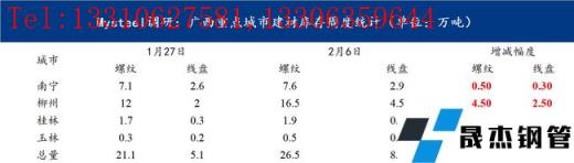 本周廣西建筑厚壁無(wú)縫鋼管價(jià)格小幅上漲,較節(jié)前上漲80元/噸。春節(jié)期間由于需求停滯,貿(mào)易商提貨較少,多數(shù)滯留在廠內(nèi),因而社庫(kù)庫(kù)存整體增加幅度較往年有所降低。商家整體心態(tài)尚可,對(duì)后市觀望情緒濃厚。截至昨日(正月初六)據(jù)我網(wǎng)跟蹤調(diào)研統(tǒng)計(jì),廣西市場(chǎng)庫(kù)存建筑厚壁無(wú)縫鋼管34.6萬(wàn)噸,較節(jié)前相比增加8.4萬(wàn)噸,較去年節(jié)后同期相比減少5.9萬(wàn)噸。從區(qū)域數(shù)據(jù)來(lái)看,南寧市場(chǎng)主要庫(kù)存資源為桂萬(wàn)鋼,其商戶資源多數(shù)在廠內(nèi),只要節(jié)前零星商戶的資源到本倉(cāng)庫(kù),以及有云南材等資源,因而整體增加了0.8萬(wàn)噸;而柳州市場(chǎng)由于柳鋼資源多數(shù)都會(huì)發(fā)往物流園,因而資源相對(duì)增加幅度較高,較春節(jié)前增加7萬(wàn)噸。從整體庫(kù)存來(lái)看,廠家和社會(huì)庫(kù)存壓力尚在,但是隨著后期需求的釋放,或?qū)⒂兴徑?,短期本地市?chǎng)價(jià)格或?qū)⒗^續(xù)面臨小幅上漲。