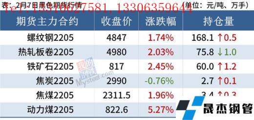 熱軋板卷:2月7日,全國24個(gè)主要城市4.75mm熱軋板卷均價(jià)5011元/噸,較節(jié)前(1月30日)上漲97元/噸。目前整體市場上漲幅度較大,在冬奧會(huì)限產(chǎn)背景下,需求將逐漸趨于好轉(zhuǎn),現(xiàn)貨市場情緒較為樂觀,各地厚壁無縫鋼管現(xiàn)貨價(jià)格全面上漲。春節(jié)期間,主流無縫厚壁鋼管廠家均上調(diào)2月出廠價(jià),截止2月6日,全國五大主要厚壁無縫鋼管品種總庫存共增加477.47萬噸至2030.02萬噸,較去年同期下降27%,環(huán)比增幅30.77%。故預(yù)計(jì)8日熱軋板卷價(jià)格或?qū)⒎€(wěn)中上行。