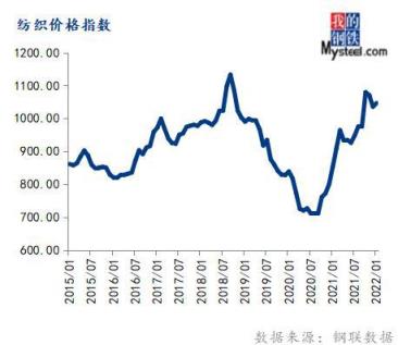1月份紡織價格指數(shù)為1046.62,環(huán)比上漲1.07%,同比上漲22.72%。